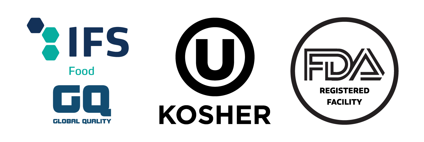 IFS food GLOBAL QUALITY Certification, FDA registred, Kosher Certification.